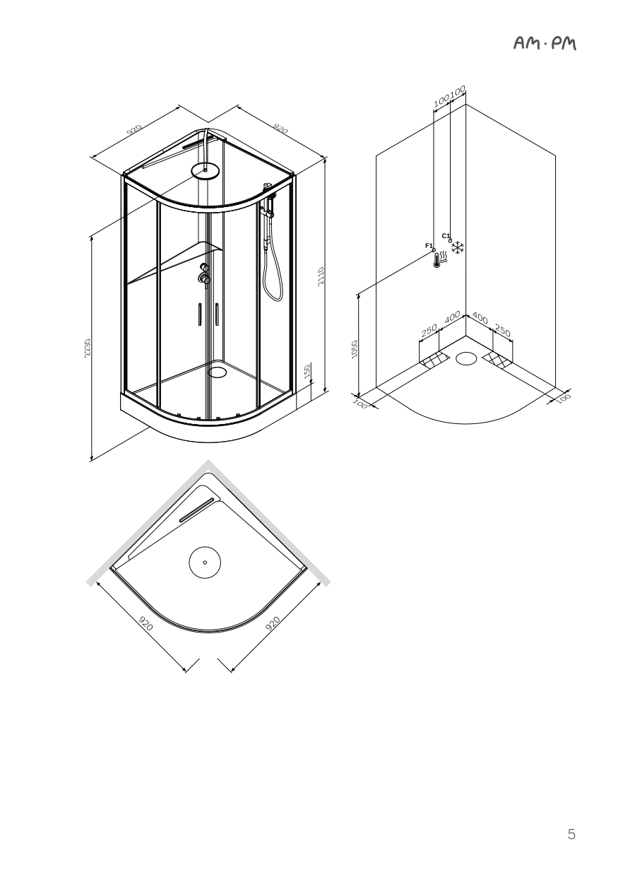 Душевая система AM.PM Gem F0790022 стойка с тропическим душем, черная
