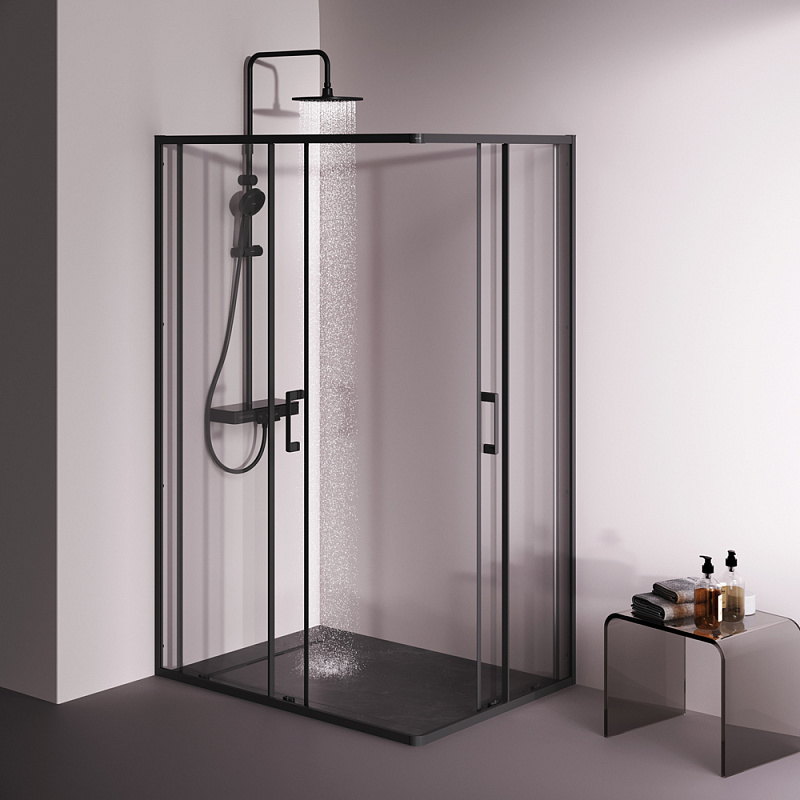 Душевое ограждение от бренда AM.PM из коллекции Above - новая функциональная конструкция для оформления душевой зоны в вашем интерьере ванной комнаты. Каждая деталь соответствует высоким требованиям к качеству и эргономике. Стильные коннекторы с логотипом AM.PM, модные ручки с паттерном, дизайнерские ролики повторяющие форму профиля. Современный дизайн, ультратонкие профили шириной всего 30 мм создают максимально воздушный дизайн, минимум профиля и максимум стекла. Цвет профиля - черный матовый. Размер (Ш/Г/В): 1184-1194x884-894x1900 мм. Материал ограждения - прозрачное стекло; алюминий. Толщина стекла - 5 мм. Форма - прямоугольная.