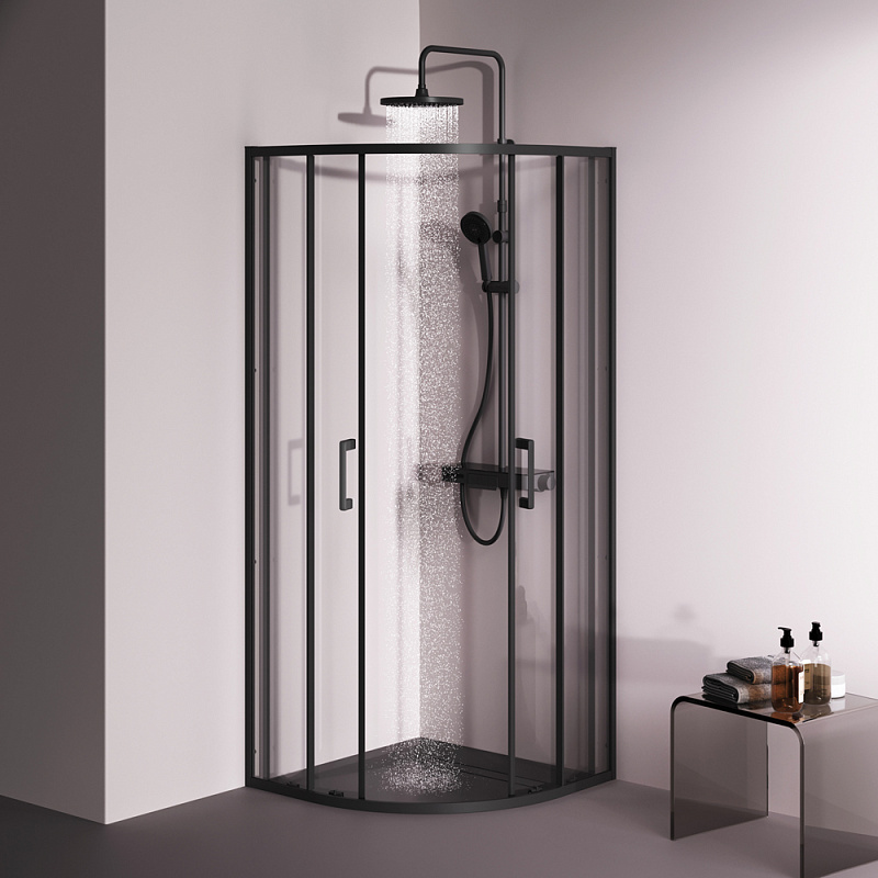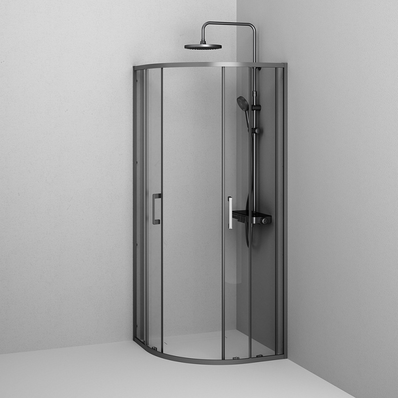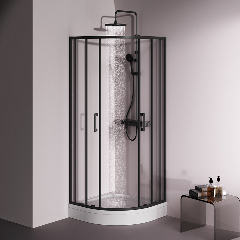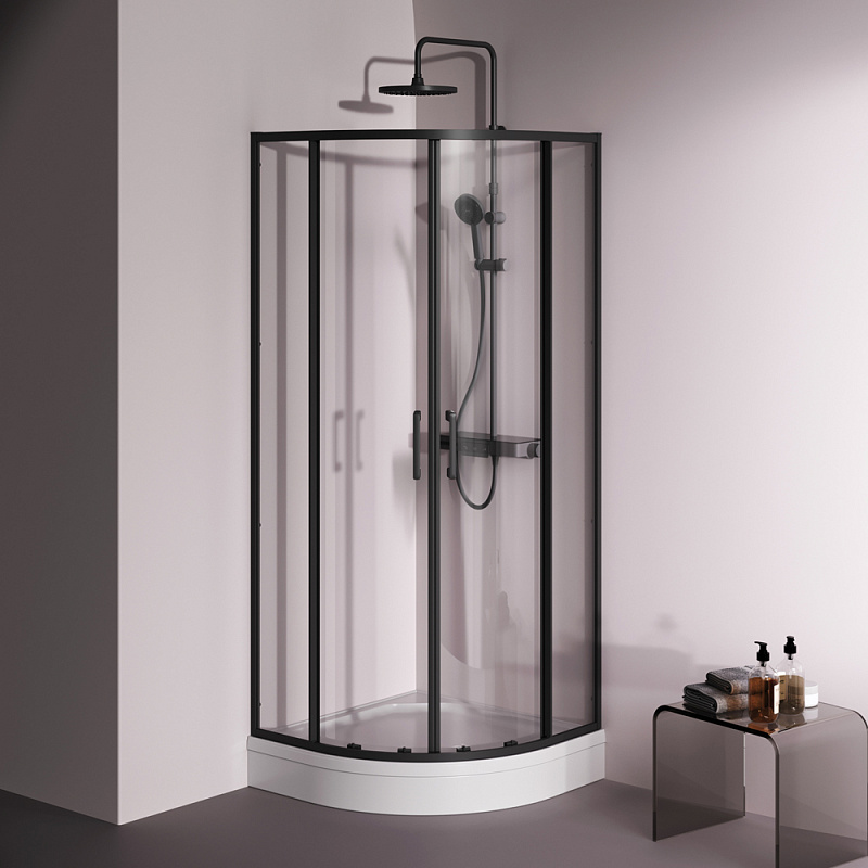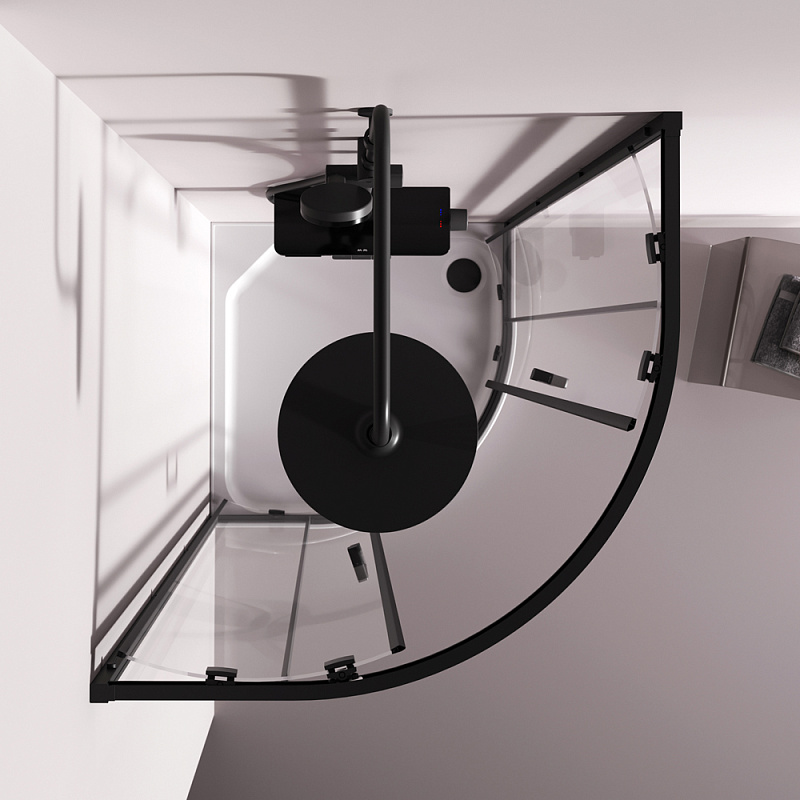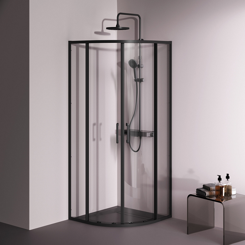 Душевое ограждение от бренда AM.PM из коллекции Above - новая функциональная конструкция для оформления душевой зоны в вашем интерьере ванной комнаты. Каждая деталь соответствует высоким требованиям к качеству и эргономике. Стильные коннекторы с логотипом AM.PM, модные ручки с паттерном, дизайнерские ролики повторяющие форму профиля. Современный дизайн, ультратонкие профили шириной всего 30 мм создают максимально воздушный дизайн, минимум профиля и максимум стекла. Цвет профиля - черный матовый. Размер (Ш/Г/В): 780-790x780-790x1900 мм. Материал ограждения - прозрачное стекло; алюминий. Толщина стекла - 5 мм. Форма - 1/4 круга.