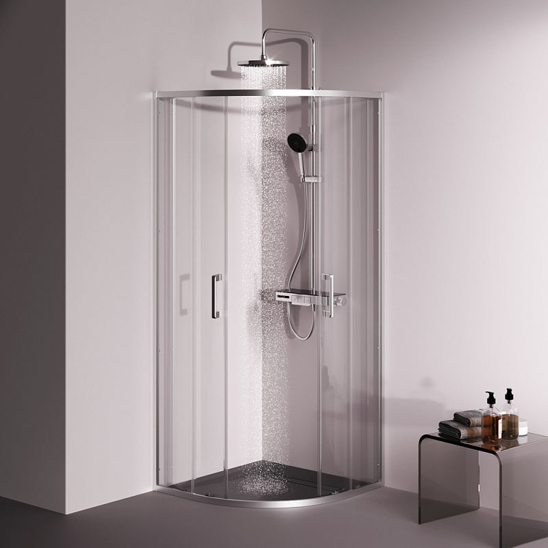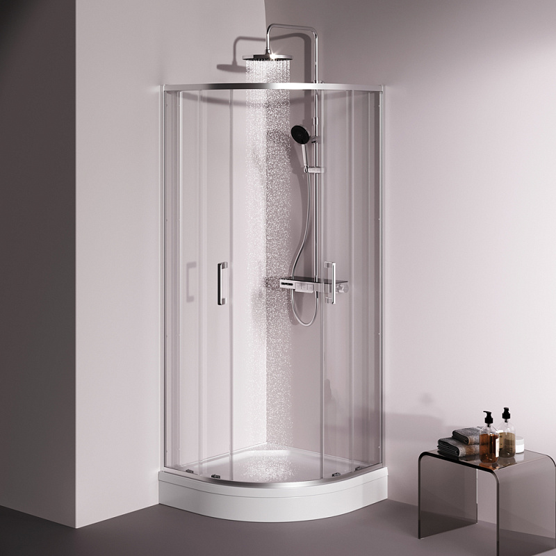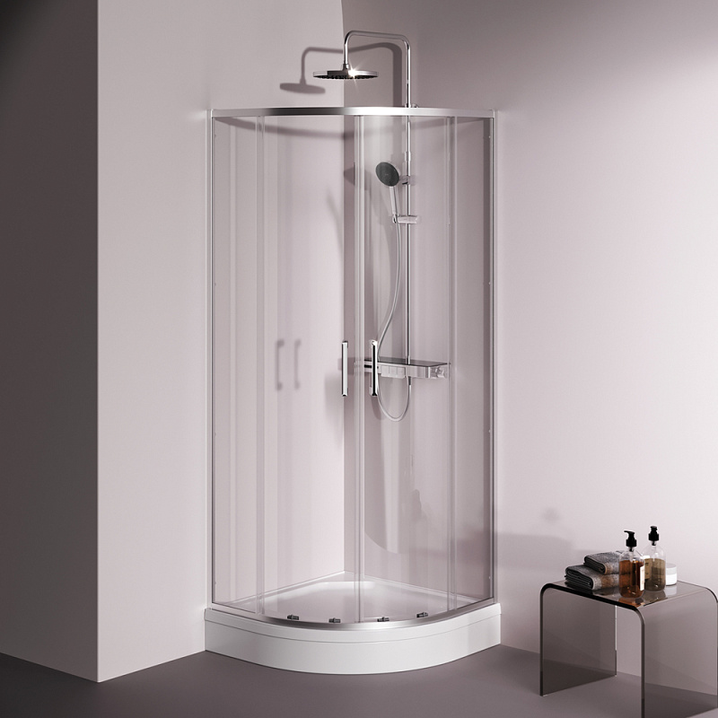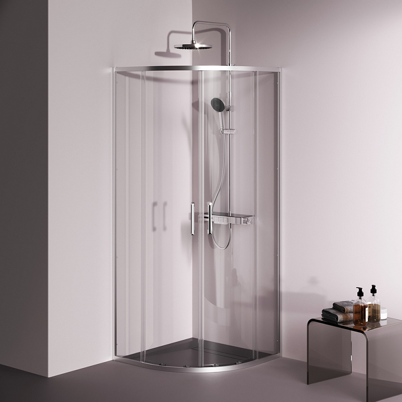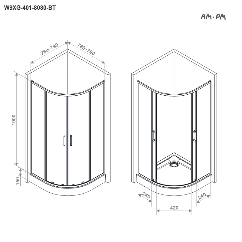 Душевое ограждение от бренда AM.PM из коллекции Above - новая функциональная конструкция для оформления душевой зоны в вашем интерьере ванной комнаты. Каждая деталь соответствует высоким требованиям к качеству и эргономике. Стильные коннекторы с логотипом AM.PM, модные ручки с паттерном, дизайнерские ролики повторяющие форму профиля. Современный дизайн, ультратонкие профили шириной всего 30 мм создают максимально воздушный дизайн, минимум профиля и максимум стекла. Цвет профиля - серебристый. Размер (Ш/Г/В): 780-790x780-790x1900 мм. Материал ограждения - прозрачное стекло; алюминий. Толщина стекла - 5 мм. Форма - 1/4 круга.