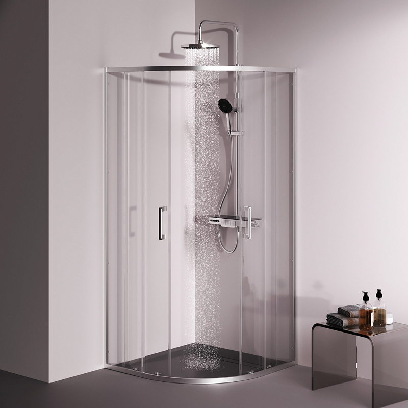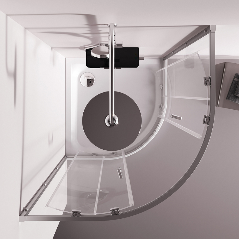 Душевое ограждение от бренда AM.PM из коллекции Above - новая функциональная конструкция для оформления душевой зоны в вашем интерьере ванной комнаты. Каждая деталь соответствует высоким требованиям к качеству и эргономике. Стильные коннекторы с логотипом AM.PM, модные ручки с паттерном, дизайнерские ролики повторяющие форму профиля. Современный дизайн, ультратонкие профили шириной всего 30 мм создают максимально воздушный дизайн, минимум профиля и максимум стекла. Цвет профиля - серебристый. Размер (Ш/Г/В): 880-890x880-890x1900 мм. Материал ограждения - прозрачное стекло; алюминий. Толщина стекла - 5 мм. Форма - 1/4 круга.