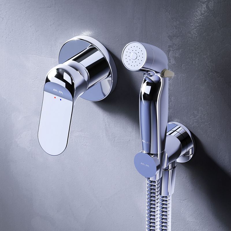 Встраиваемый гигиенический душ со смесителем AM.PM Sunny и шлангом 1200 мм. Материал - латунь. Цвет - хром. 1 режим гигиенического душа - Spray.