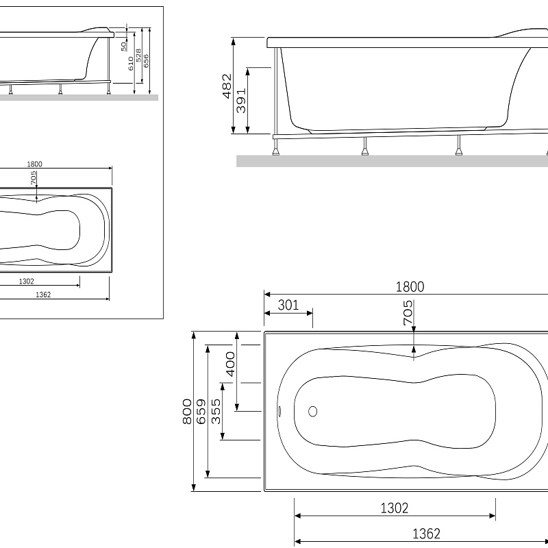 Каркас для ванны 180 AM.PM Bliss L W53A-180-080W-R