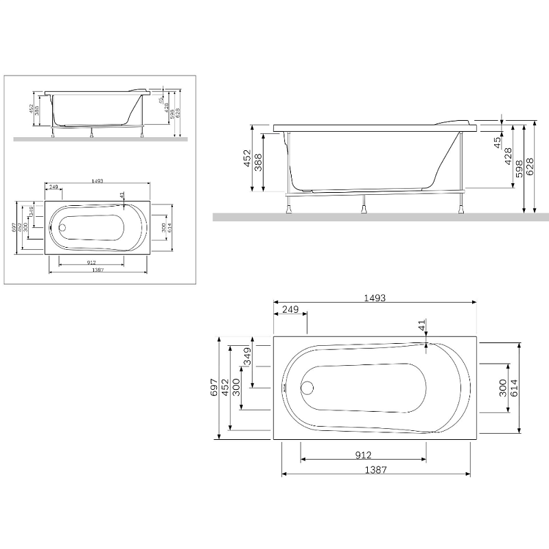 Ванна акриловая 150x70 AM.PM Spirit W72A-150-070W-A2 белая глянцевая