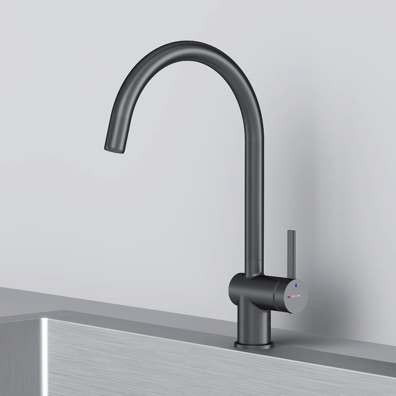Встречайте долгожданное пополнение нашумевшей коллекции Func — кухонные смесители с оригинальными «фишками», характерными для всей коллекции. Дизайн, характерный только для премиум-сегмента, благодаря собственным дизайнерам бренда теперь представлен и в более доступной ценовой категории. Размер (Ш/Г/В): 105x262x380 мм. Материал - нержавеющая сталь, цинк, латунь. Цвет - черный. Тип управления - однозахватный. Излив - поворотный.