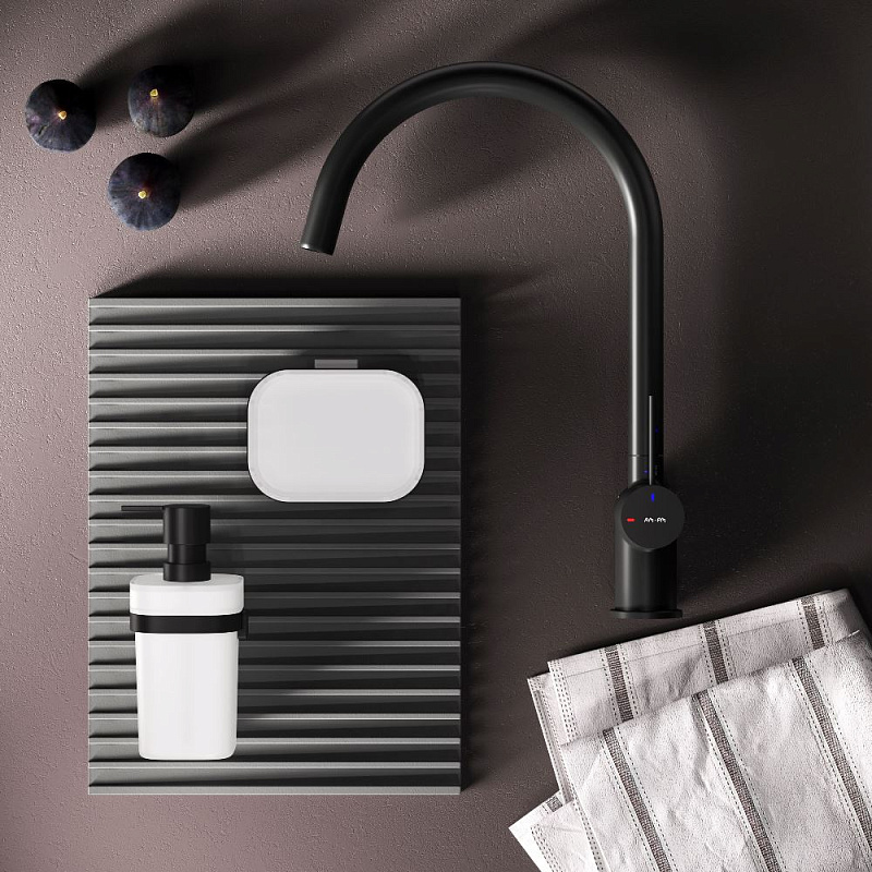 Смеситель для кухни AM.PM Func F8F07822 высокий, черный с каналом для питьевой воды и гибким черным изливом