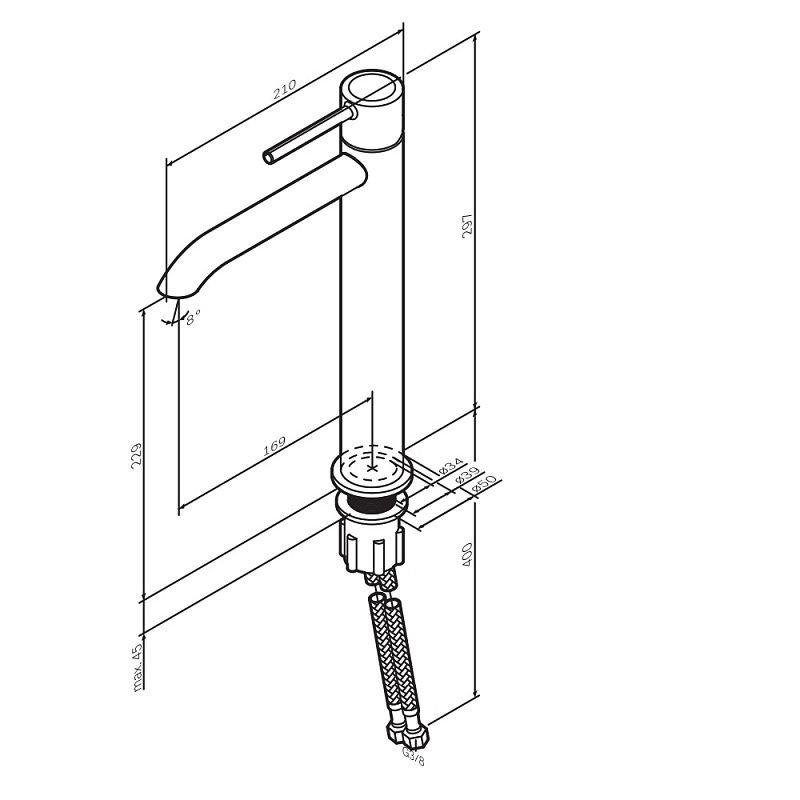 Высокий смеситель для раковины AM.PM коллекции Libre - переосмысление современного минимализма в линейке AM.PM. Коллекция Libre объединяет мягкие плавные линии и чёткую геометрию, создавая ощущение лёгкости, простора и визуального баланса. Дизайн, разработанный совместно со всемирно известным агентством Brandis, Германия, не просто приковывает к себе внимание, а задает атмосферу всей ванной комнаты. Характерный излив — ключевая особенность коллекции. Такое решение требует высокой точности производства и формирует цельный, визуально безупречный силуэт. Размер (Ш/Г/В): 50x210x297 мм. Материал - Латунь, Zamak 3. Цвет - черный.