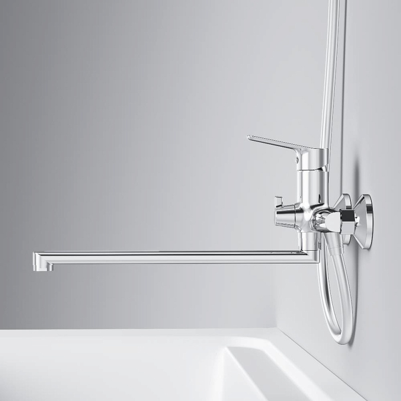 Смеситель для ванны и душа AM.PM Crave F9C90200 длинный излив, хром