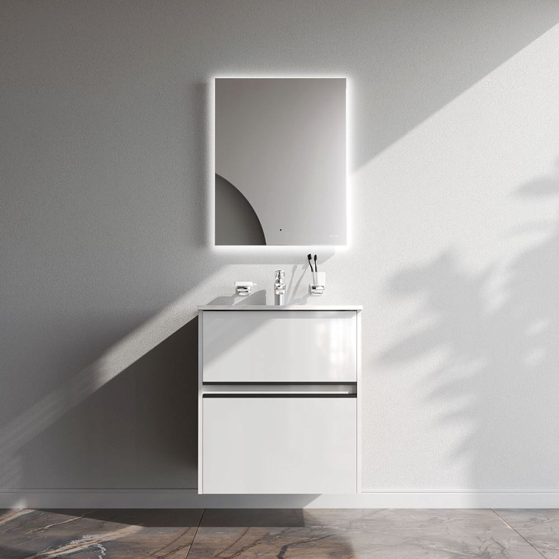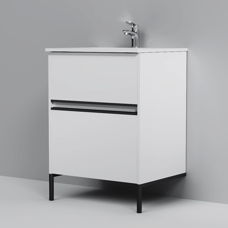 Тумба с раковиной 60 AM.PM Sense M7B-FUX0602WG-WCC0602WG подвесная/напольная на ножках, белый глянец