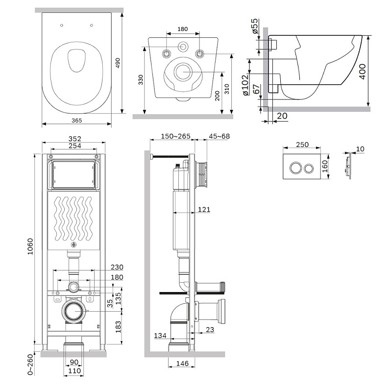 Инсталляция для подвесного унитаза бренда AM.PM коллекции ErgoFit с механическим управлением смыва включает в себя максимально полный комплект поставки: крепления, патрубки, звукоизолирующую прокладку, двухрежимную клавишу смыва. Подвод воды: Сверху универсальный (справа или слева). Размер инсталляции(Ш/Г/В): 352x150-265x1060-1320 мм. Размер клавиши (Ш/Г/В): 250x10x160 мм. Цвет и материал: синий каркас из нержавеющей стали, белый бачок из ABS-пластика, черная клавиша. Форма кнопок: прямоугольные.