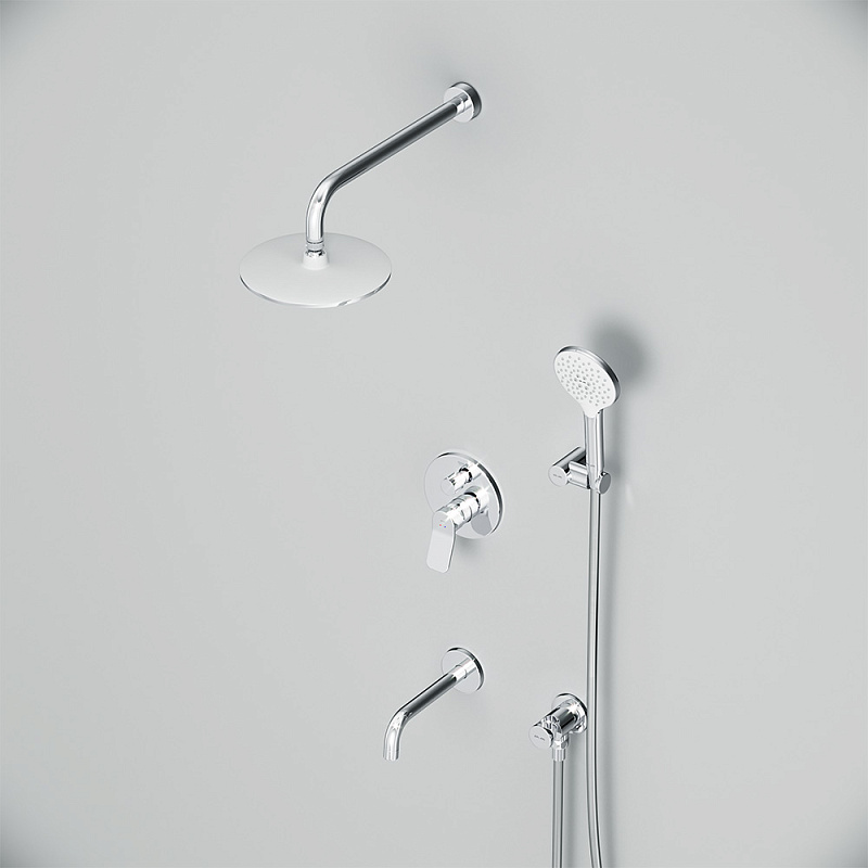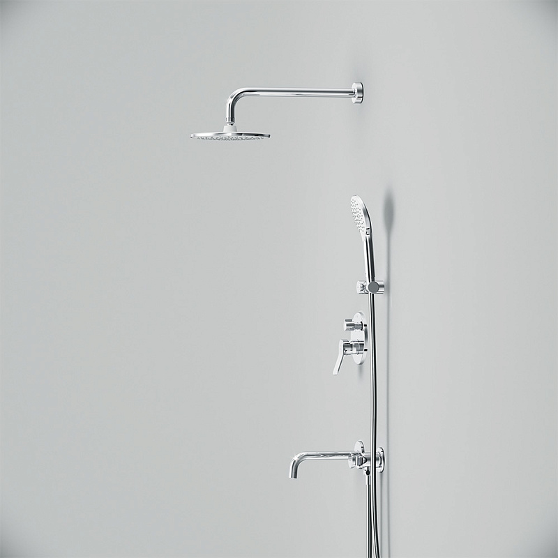 Размер ручного душа - 120 мм. Длина душевого шланга - 1750 мм. Размер держателя лейки ручного душа (Ш/Г/В): 106x75x42 мм. Цвет - хром. Монтируемый в стену излив - это современное решение для экономии пространства. Длина излива составляет 204 мм. Цвет - хром. Размер смесителя (Ш/Г/В): 150x144x180 мм. Материал встраиваемой душевой системы - Латунь, Zamak, нержавеющая сталь, PPA.