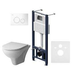 Унитаз подвесной безободковый с инсталляцией AM.PM Gem IS100238.901701 сиденьем микролифт, черной механ. клавишей